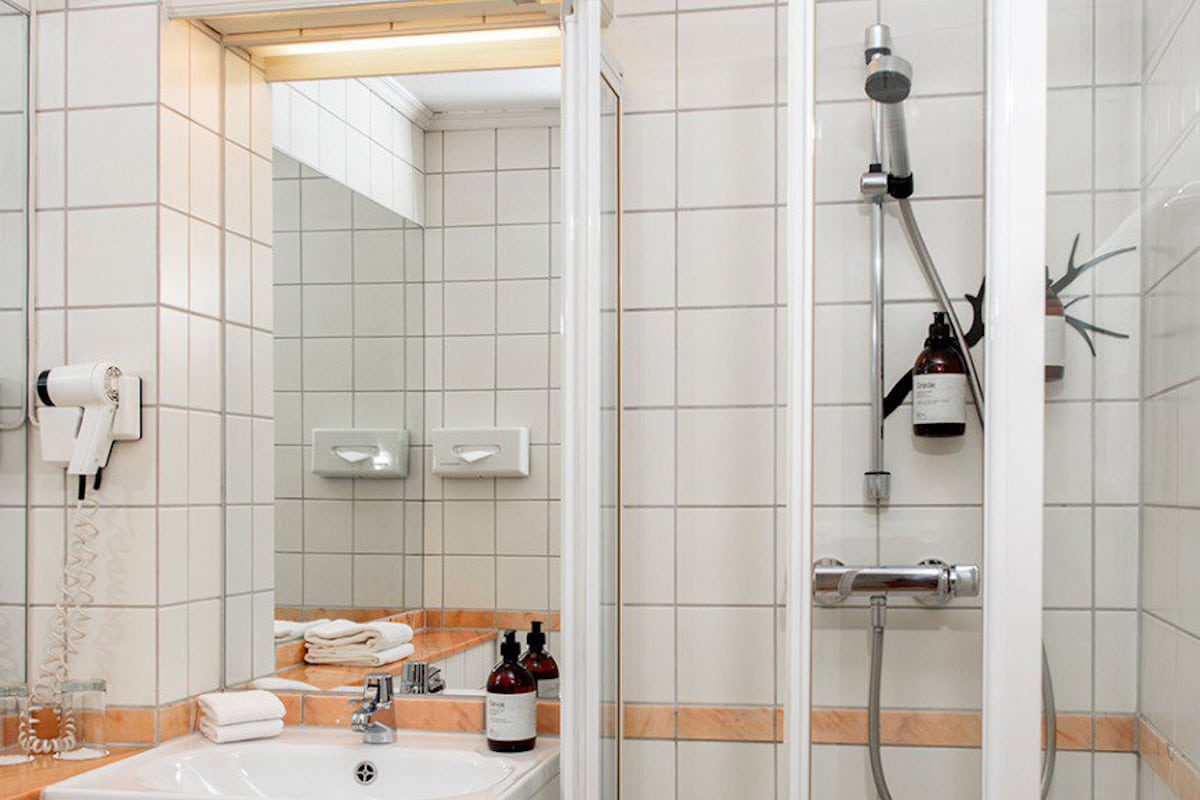 Praktisk innredet rom med enkeltseng, skrivebord og garderobe. Et utvalg kaffe og te er tilgjengelig fra kaffemaskinen i nærheten av rommet hele døgnet. Enkeltrommene har ikke TV.